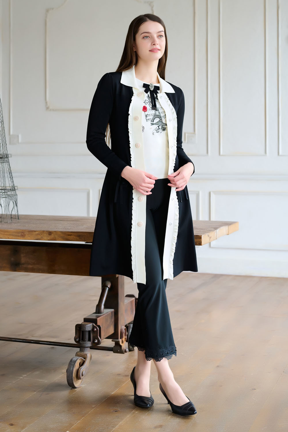 Cardigan 前立てフリル配色デザインロングカーディガン 詳細 ▶