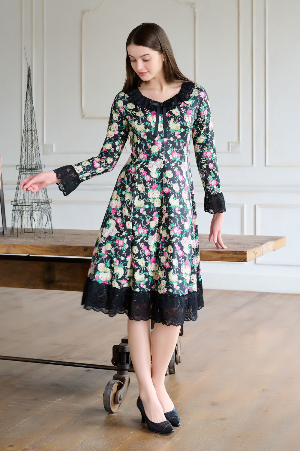 One Piece バラ柄プリント×レース切替ワンピース 詳細 ▶