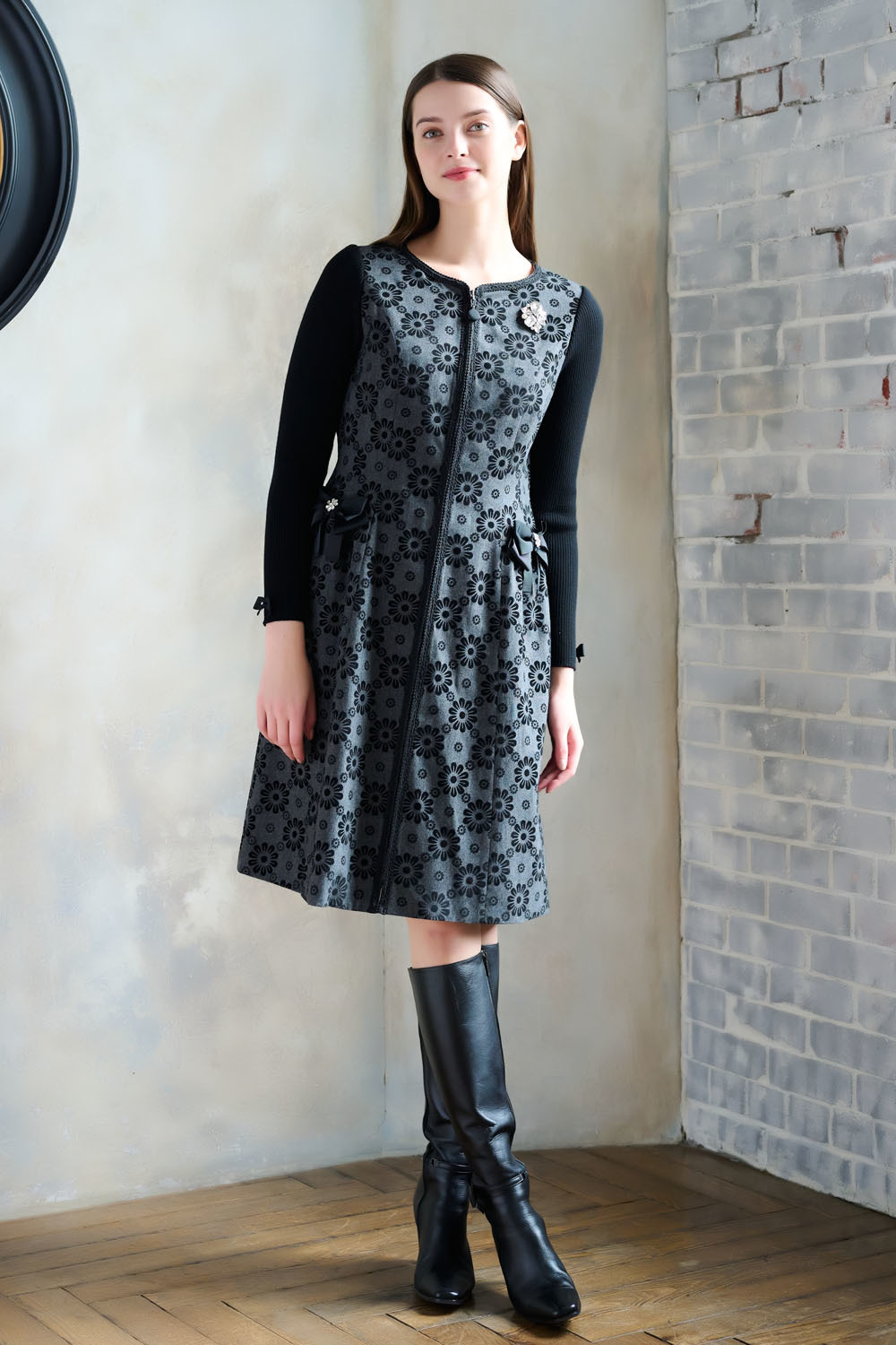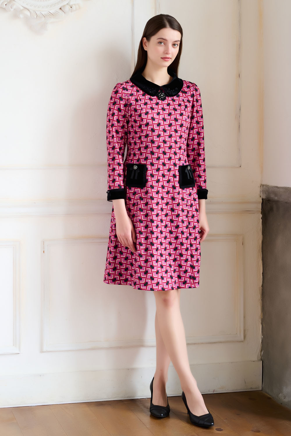 One Piece ベロア衿 ポンチ素材の幾何学模様ワンピース 詳細 ▶