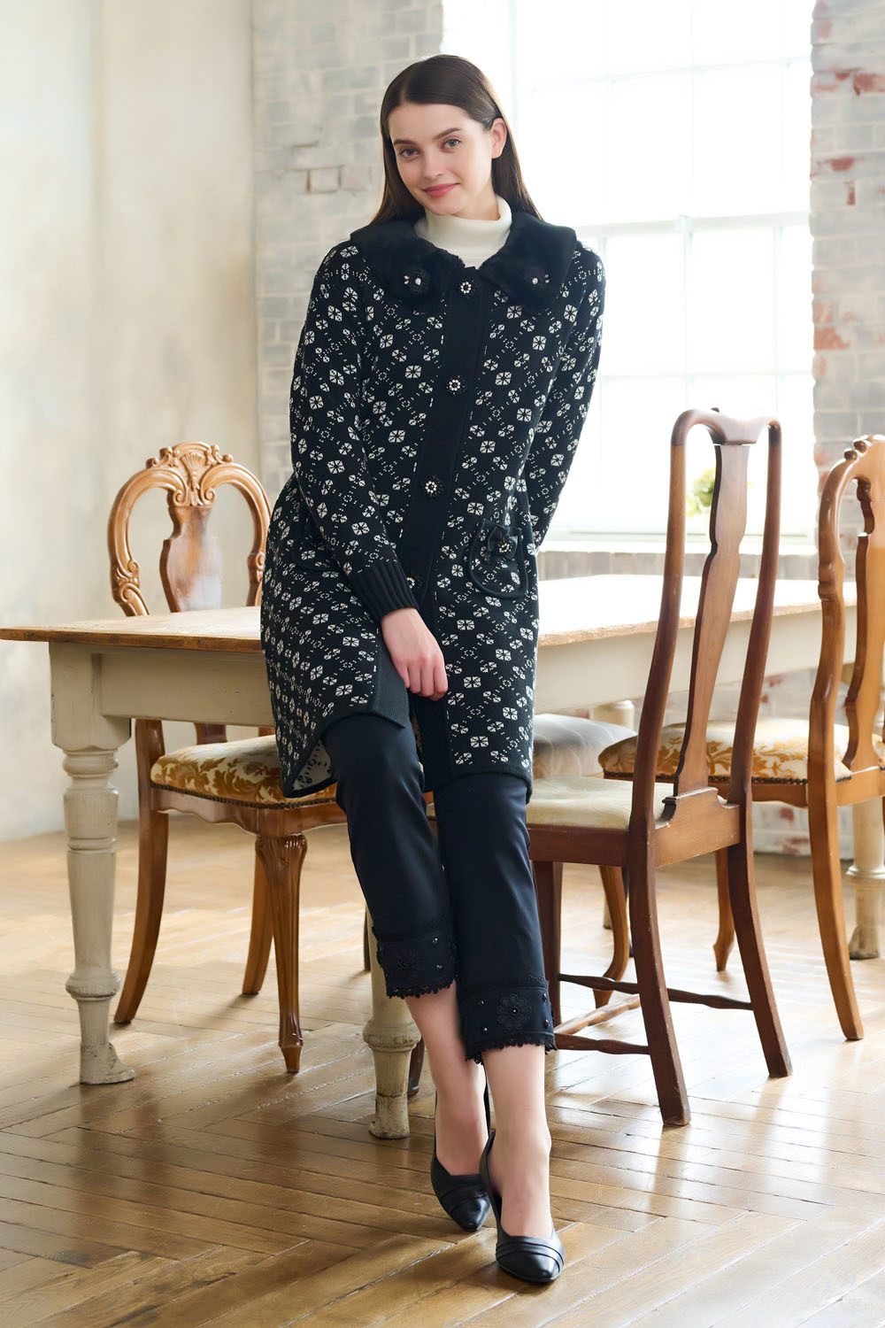 Jacket 衿ファー×ビジュー使用ジャガード編みニットジャケット 詳細 ▶