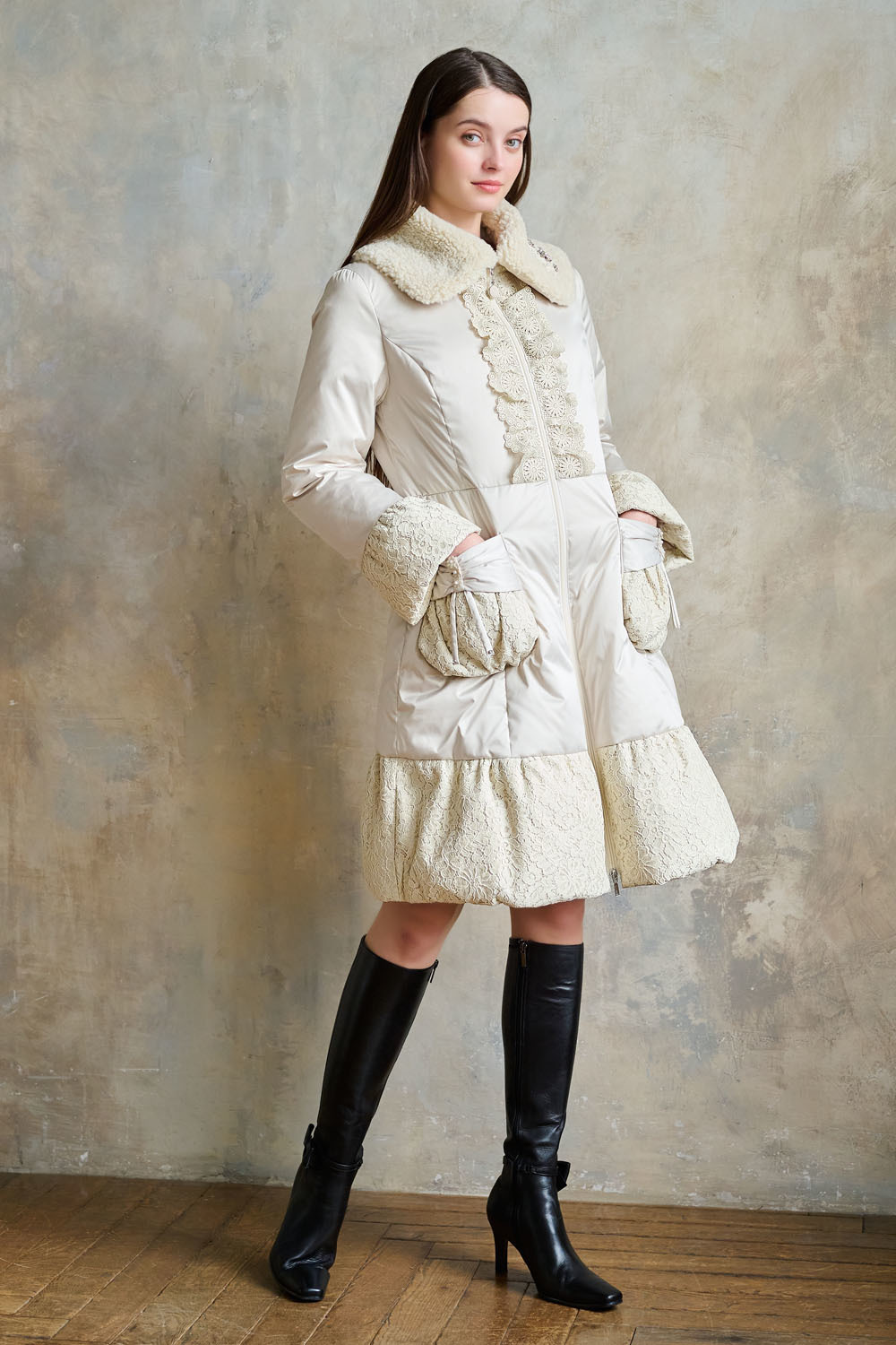 Coat ボア衿×レース切替ロングダウンコート 詳細 ▶