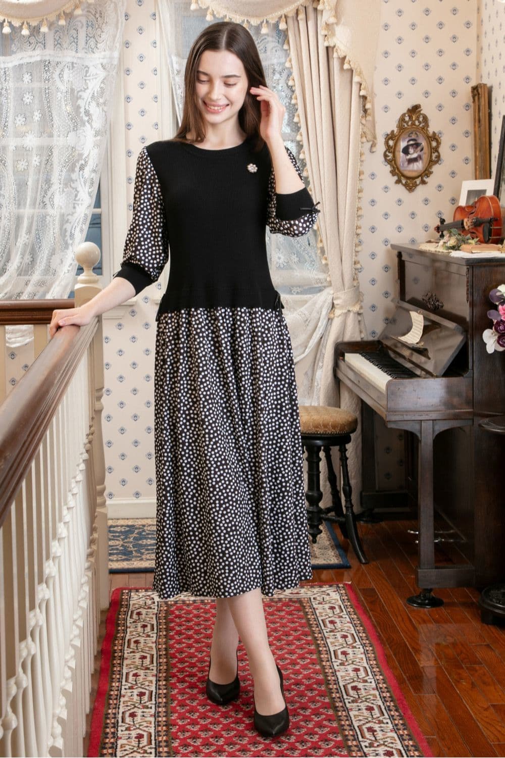 2025年春夏 ドット柄切替レイヤード風ワンピース 2511018 2月入荷予定 詳細 ▶