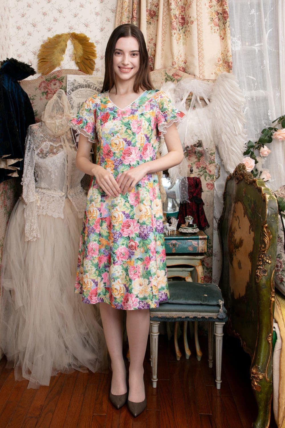 2025年春夏 バラ柄プリント 半袖ワンピース 2516024 4月入荷予定 詳細 ▶