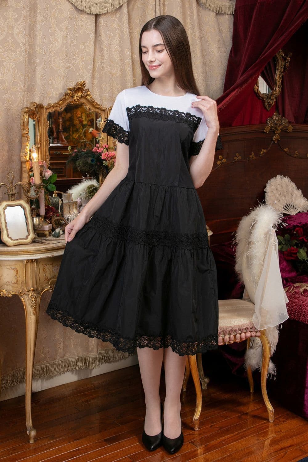 2025年春夏 胸元切替レース使い半袖ワンピース 2516029 4月入荷予定 詳細 ▶