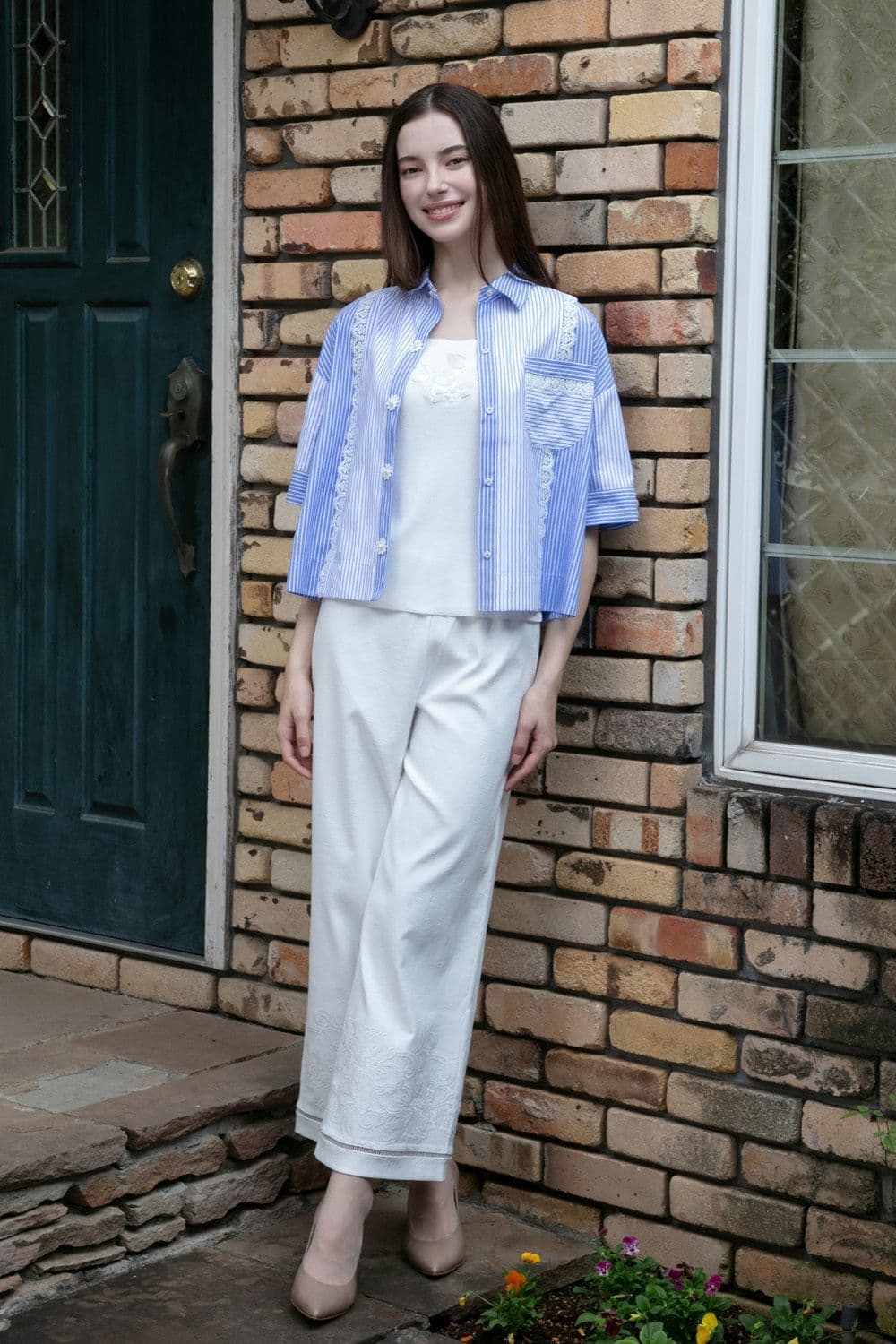 2025年春夏 ストライプ柄ショートブラウス 2515010 3月入荷予定 詳細 ▶