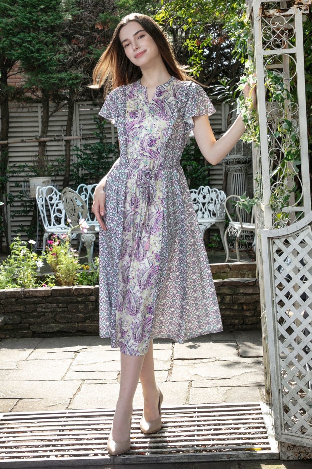 2025年春夏 胸元フリルデザイン クラシック柄ワンピース 2516033 4月入荷予定 詳細 ▶