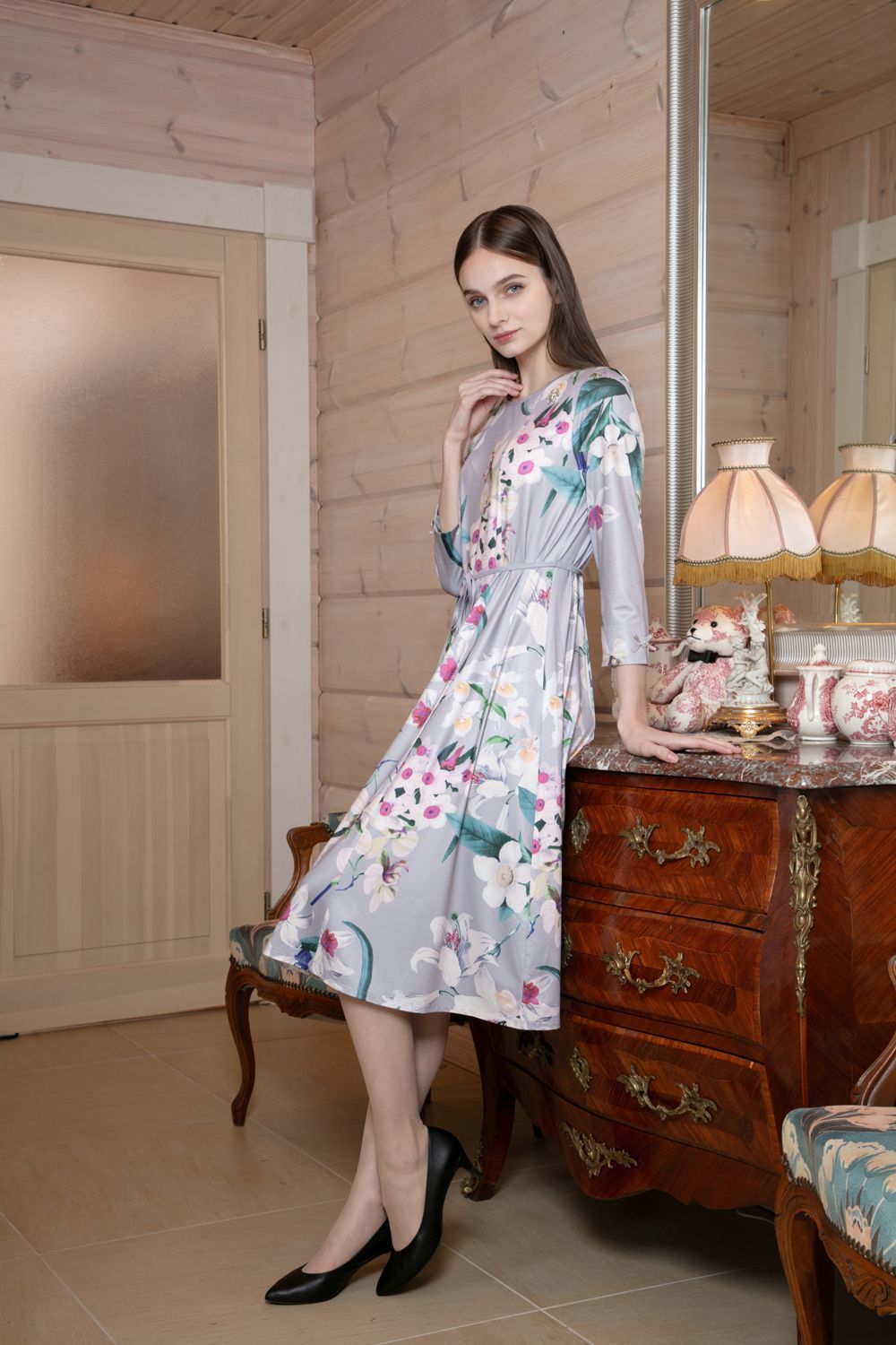 大花プリント七分袖ワンピース 詳細 ▶