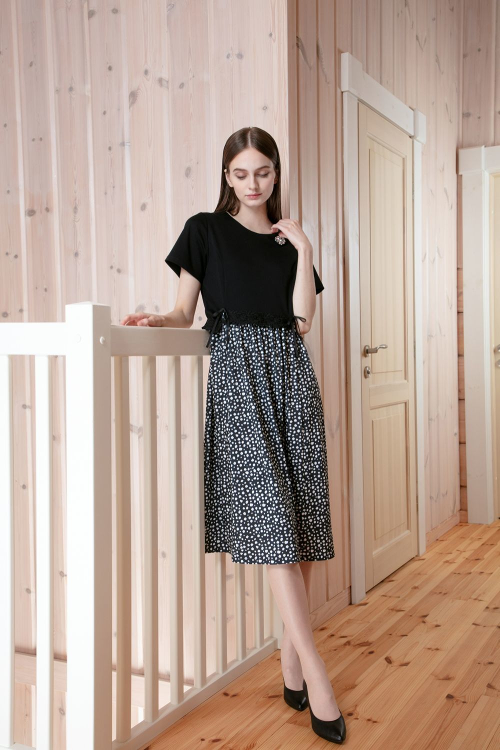 ウェストレース使い 水玉切替ワンピース 詳細 ▶