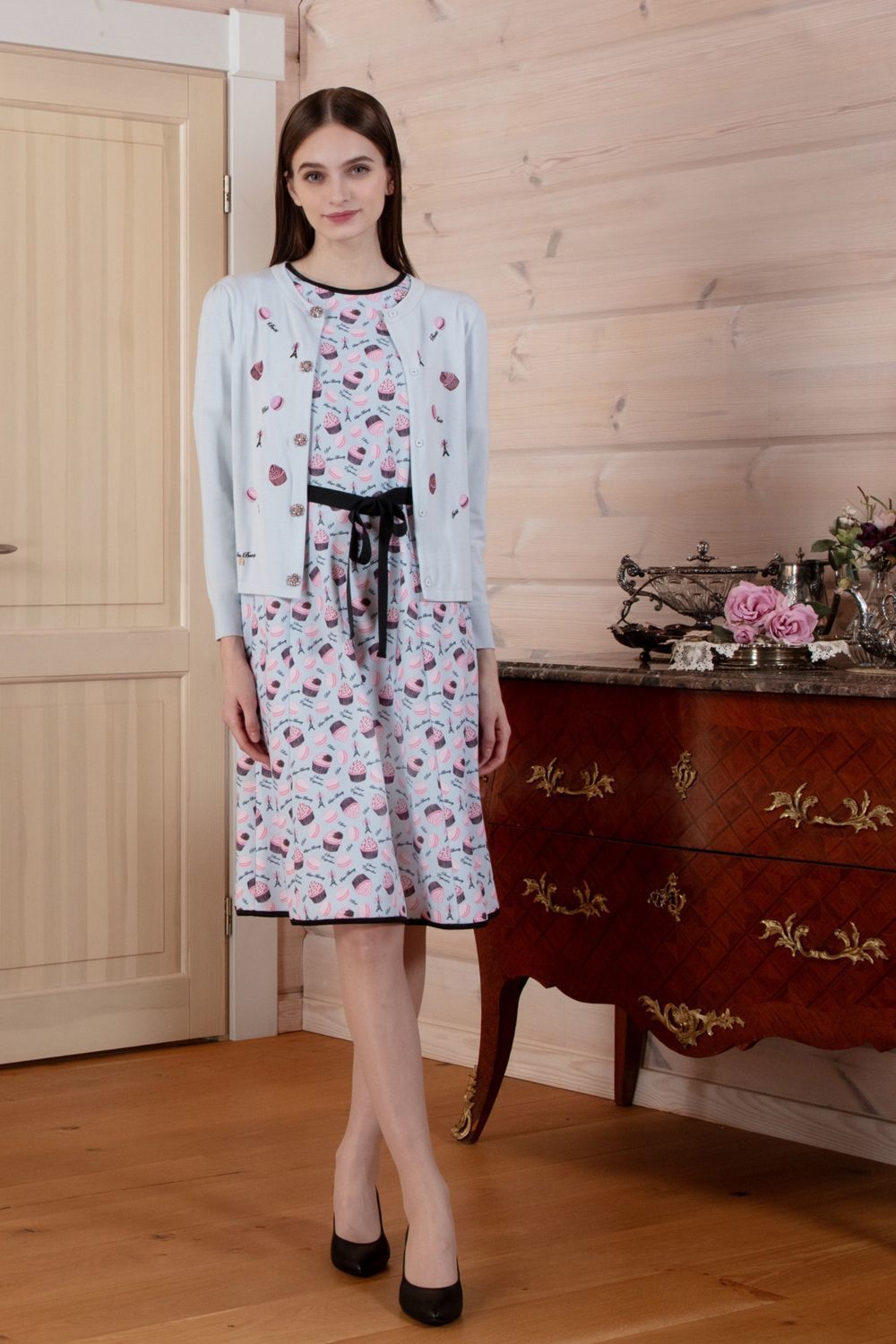 エッフェル塔モチーフ付 スイーツ柄プリント半袖ワンピース 詳細 ▶