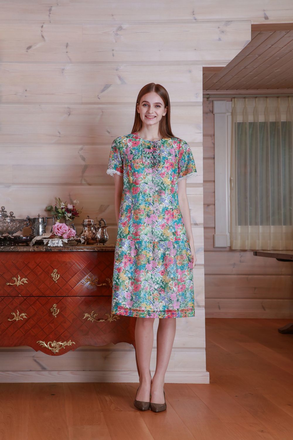大花プリント七分袖ワンピース 詳細 ▶