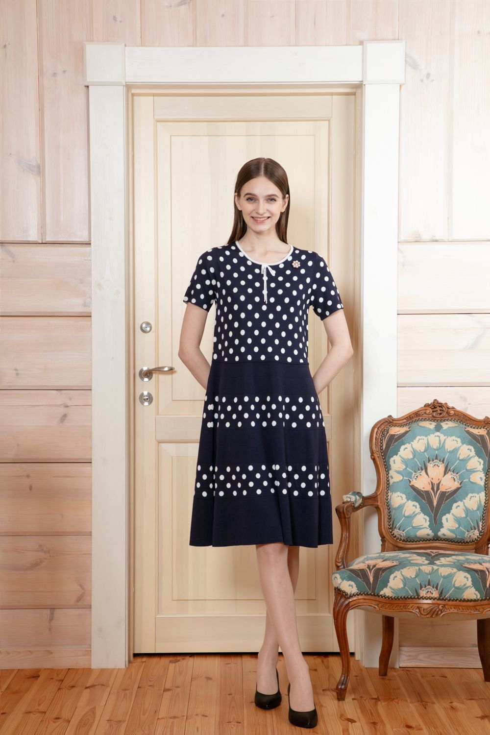 ウェストレース使い 水玉切替ワンピース 詳細 ▶